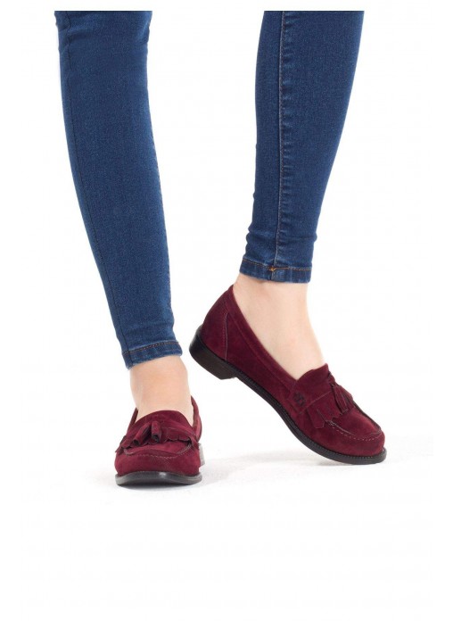 Renk/Detay: Bordo Süet Püsküllü Bayan Oxford Ayakkabı Kalıp: Ürün Dar Kalıp Taban Materyali: Termo Taban