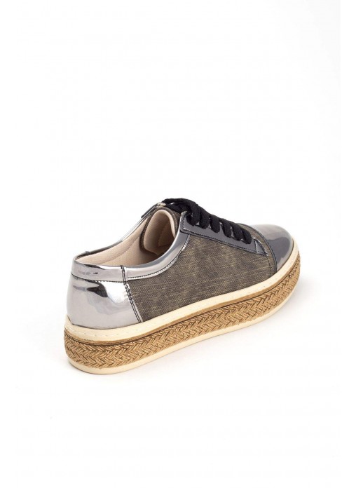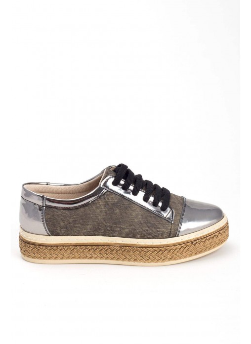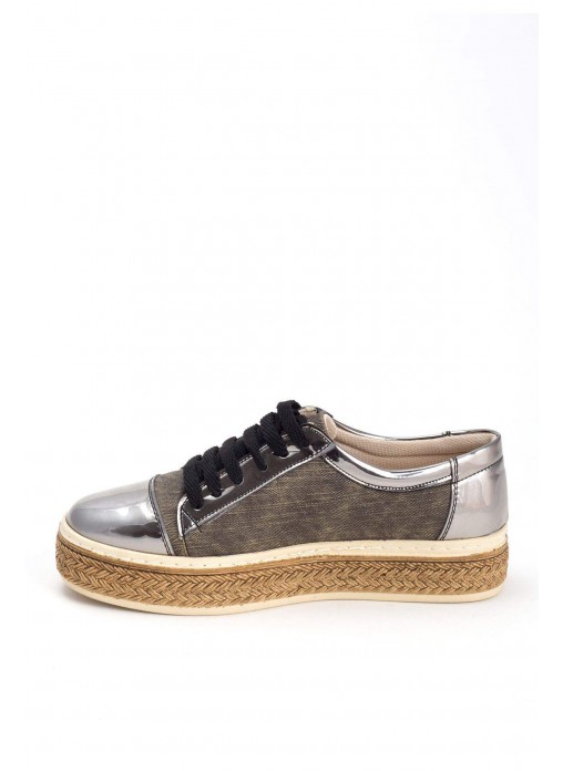 Renk/Detay: Haki Yeşili Cilt Gümüş Rugan Detaylı Bayan Spor Babet Ayakkabı Kalıp: Standart ayak ölçülerine göre Tam Kalıp Taban Materyali: Hazır Taban