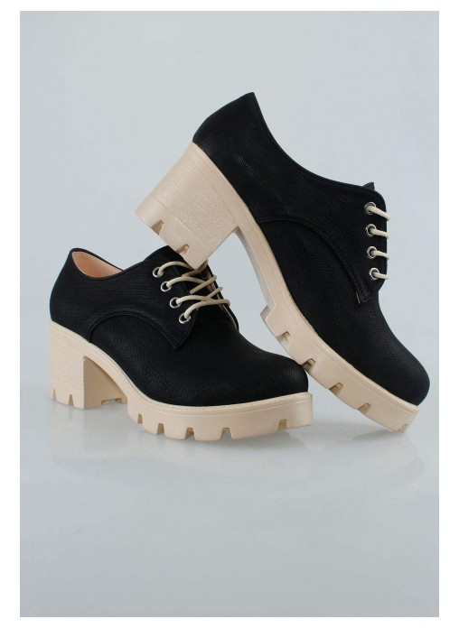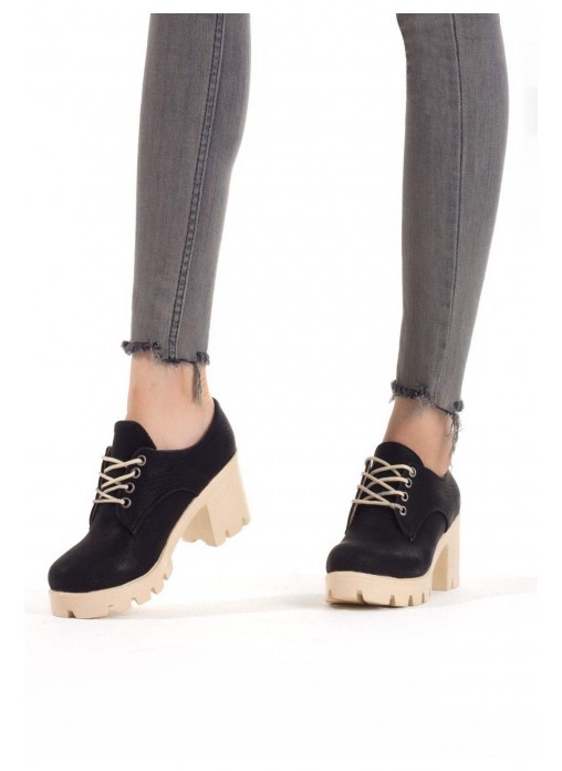 Renk/Detay: Siyah Cilt Bayan Oxford Ayakkabı Kalıp: Standart ayak ölçülerine göre Tam Kalıp Topuk Boyu : 6 cm Taban Materyali: Hazır Taban
