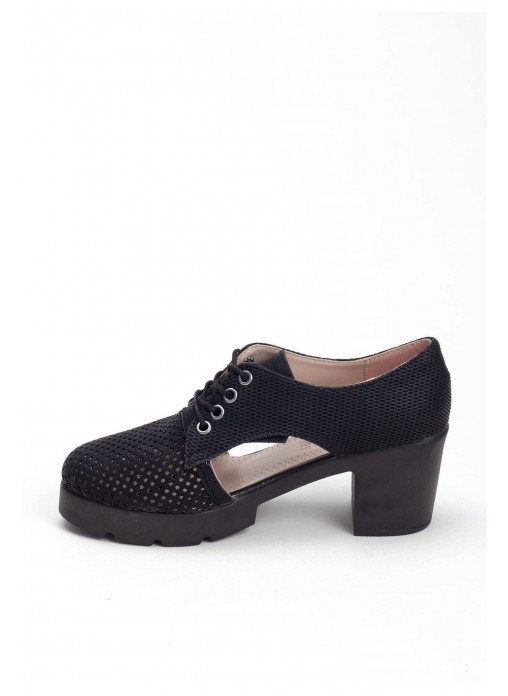 Renk/Detay: Siyah Cilt Bayan Oxford Ayakkabı Kalıp: Standart ayak ölçülerine göre Tam Kalıp Topuk Boyu : 6 cm Taban Materyali: Hazır Taban