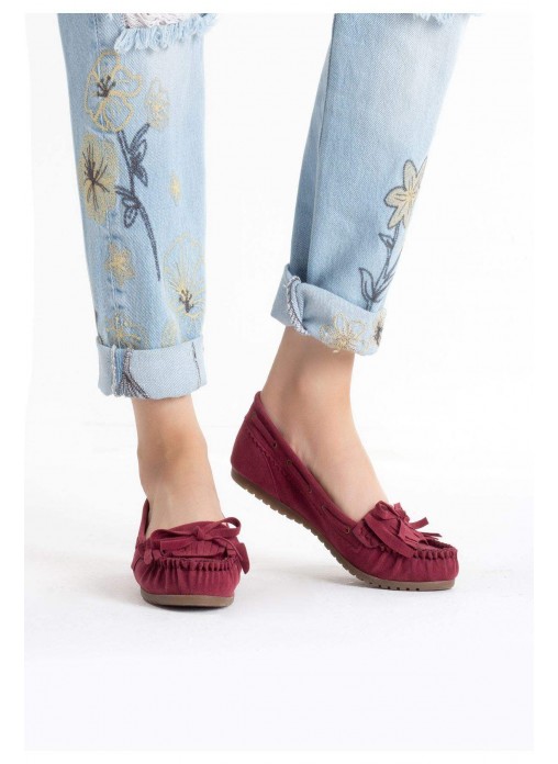 Renk/Detay:Gül Kurusu Püsküllü Babet Kalıp: Standart ayak ölçülerine göre Tam Kalıp Taban Materyali: Hazır taban