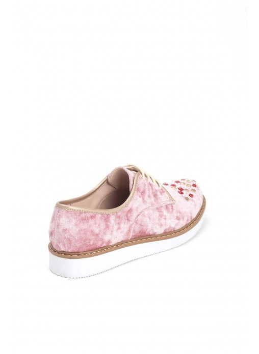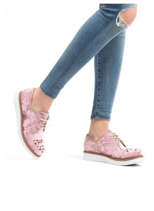 Renk/Detay: Pudra Kadife Süet Bağcıklı Babet Ayakkabı Kalıp: Standart ayak ölçülerine göre Tam Kalıp Taban Materyali: Hazır Taban