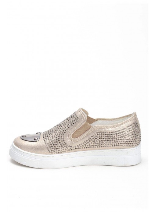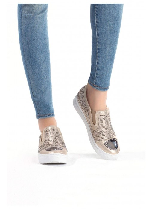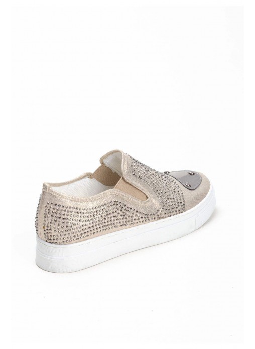 Renk/Detay: Gümüş Taşlı Bayan Spor Babet Ayakkabı Kalıp: Standart ayak ölçülerine göre Tam Kalıp Taban Materyali: Termo Taban