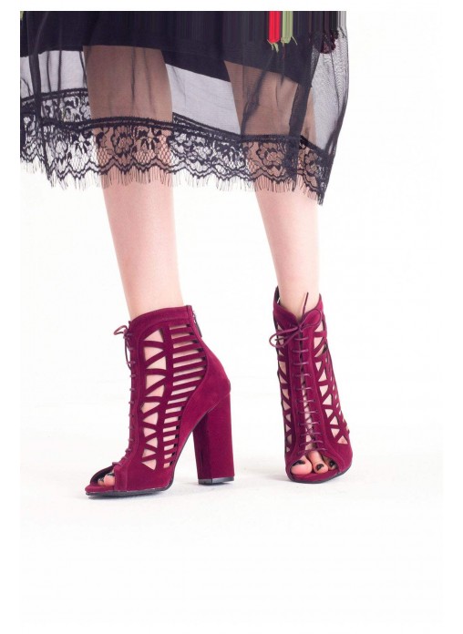 Renk/Detay: Bordo Süet Desenli Bağcıklı Bayan Topuklu Ayakkabı Kalıp: Standart ayak ölçülerine göre Tam Kalıp Topuk Boyu : 10 .5 cm Taban Materyali: Neolit Taban