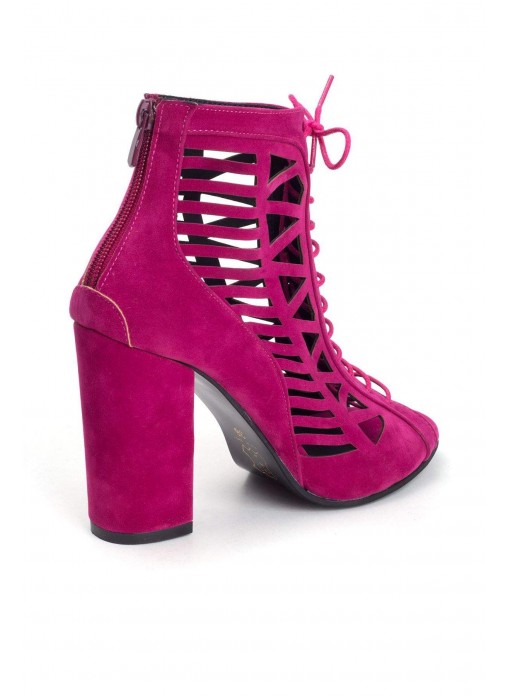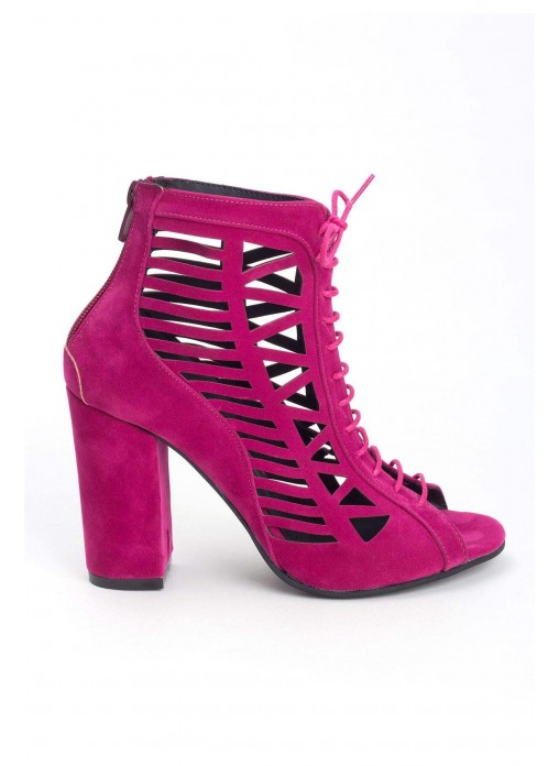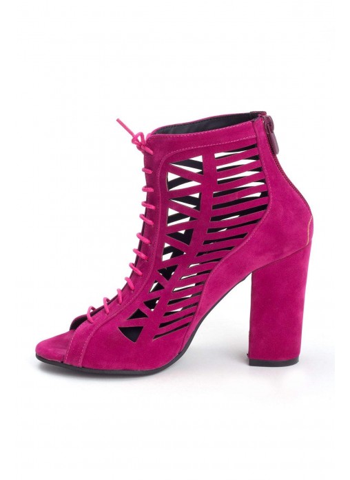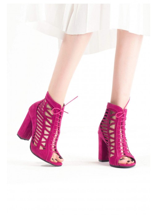 Renk/Detay: Fuşya Süet Desenli Bağcıklı Bayan Topuklu Ayakkabı Kalıp: Standart ayak ölçülerine göre Tam Kalıp Topuk Boyu : 10 .5 cm Taban Materyali: Neolit Taban