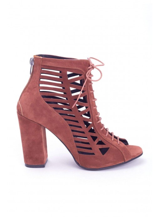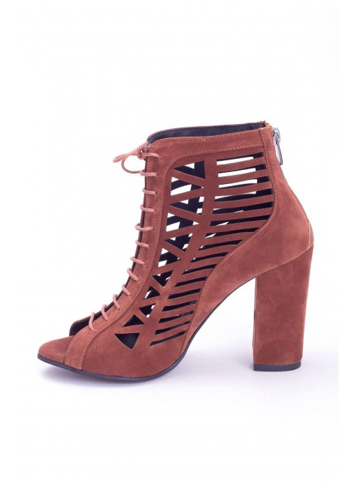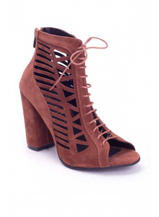 Renk/Detay: Kahverengi Süet Desenli Bağcıklı Bayan Topuklu Ayakkabı Kalıp: Standart ayak ölçülerine göre Tam Kalıp Topuk Boyu : 10 .5 cm Taban Materyali: Neolit Taban