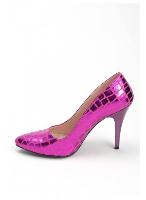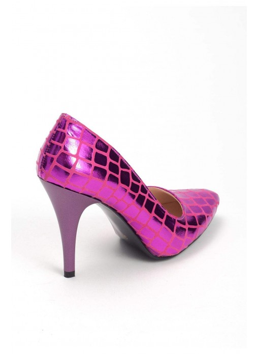 Renk/Detay: Fuşya Desenli Cilt Bayan Uzun Topuk Ayakkabı Kalıp: Standart ayak ölçülerine göre Tam Kalıp Topuk Boyu : 10 cm Taban Materyali: Neolit Taban