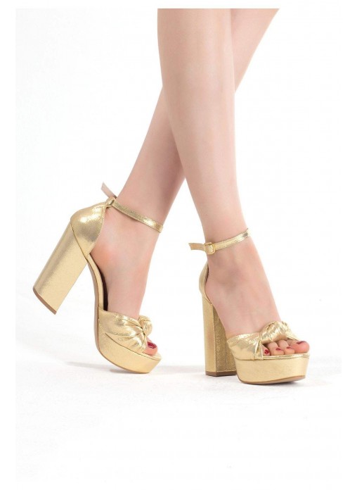 Renk/Detay: Gold Bayan Platform Topuk Ayakkabı Kalıp: Standart ayak ölçülerine göre Tam Kalıp Topuk Boyu: 12,5 cm Platform Boyu: 30 ml Taban Materyali: Neolit Taban