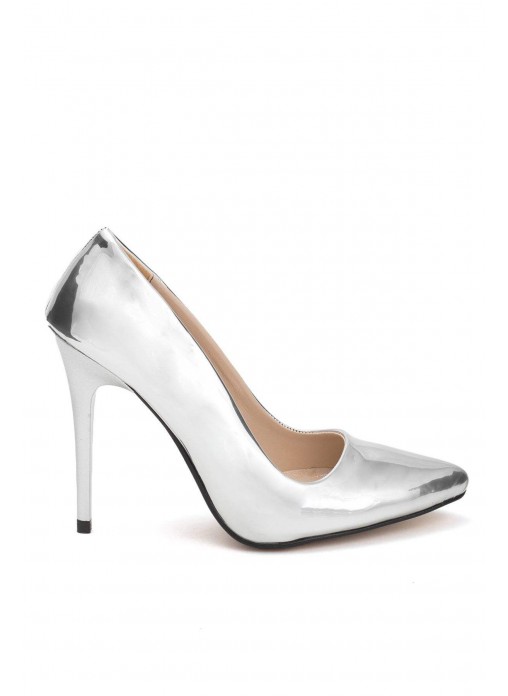 Renk/Detay: Gümüş Rugan Bayan Stiletto Ayakkabı Kalıp: Standart ayak ölçülerine göre Tam Kalıp Taban Materyali: Neolit Taban