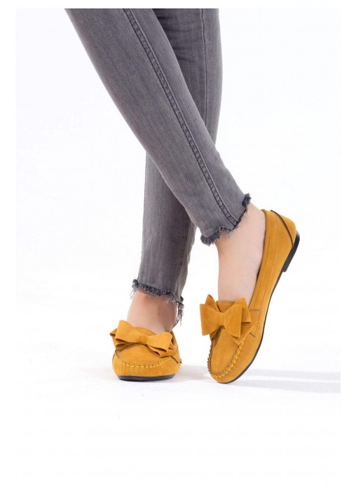 Renk/Detay: Hardal Sarısı kurdelalı bayan babet Kalıp: Standart ayak ölçülerine göre Tam Kalıp Taban Materyali: Kauçuk taban
