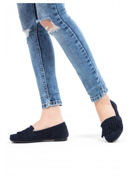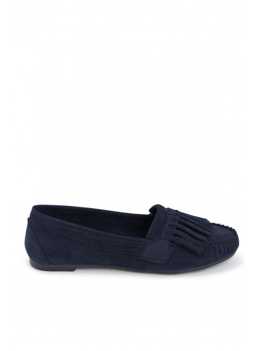 Renk/Detay: Lacivert Püsküllü Bayan Babet Kalıp: Ürün Dar Kalıp Taban Materyali: Kauçuk taban