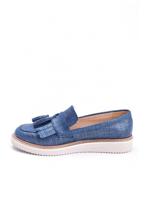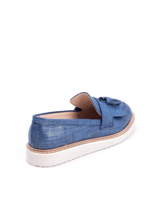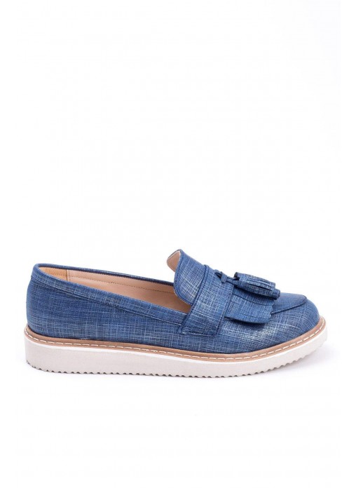 Renk/Detay: Mavi Cilt Püsküllü Bayan Babet Ayakkabı Kalıp: Standart ayak ölçülerine göre Tam Kalıp Taban Materyali: Hazır Tabann