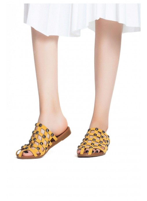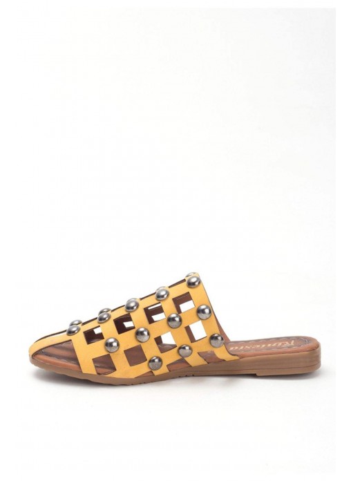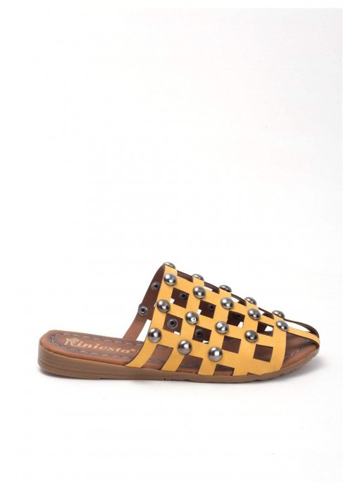 Renk/Detay: Sarı Cilt Boncuklu Bayan Terlik Kalıp: Standart ayak ölçülerine göre Tam Kalıp Taban Materyali: Termo Taban