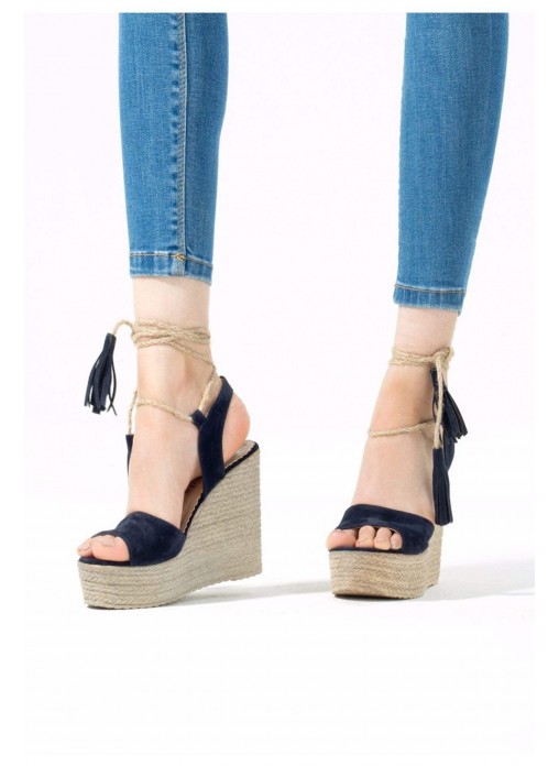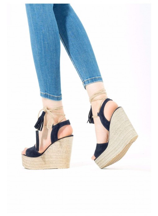 Renk/Detay: Lacivert Süet Bilekten Bağlamalı Bayan Dolgu Topuk AyakabıKalıp: Standart ayak ölçülerine göre Tam KalıpTopuk Boyu : 11,5 cmTaban Materyali: Mantar Taban