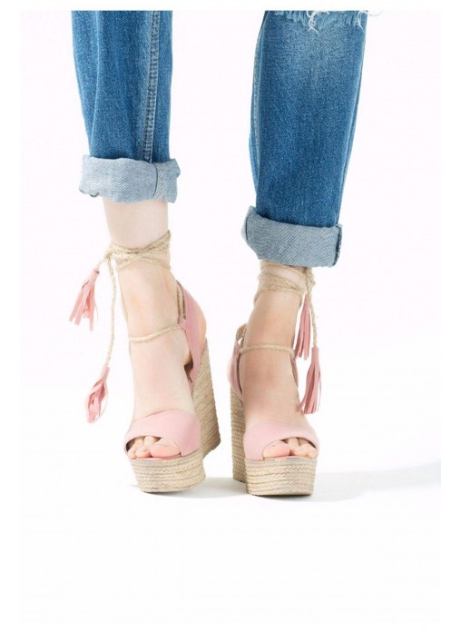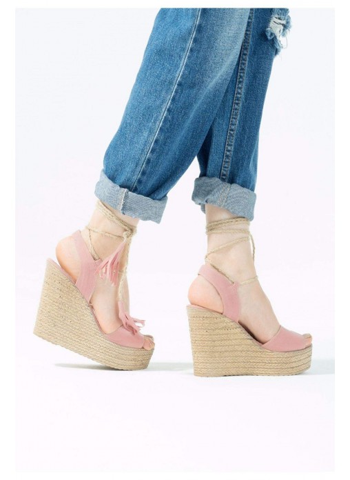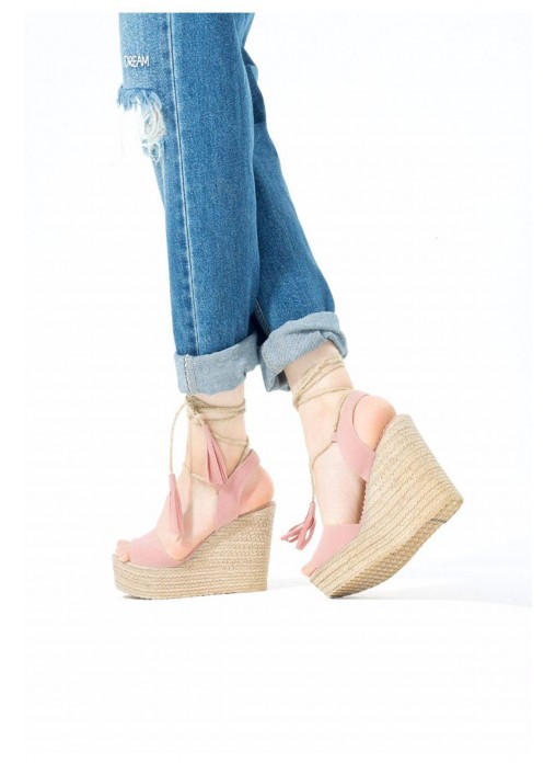 Renk/Detay: Pudra Süet Bilekten Bağlamalı Bayan Dolgu Topuk AyakabıKalıp: Standart ayak ölçülerine göre Tam KalıpTopuk Boyu : 11,5 cmTaban Materyali: Mantar Taban