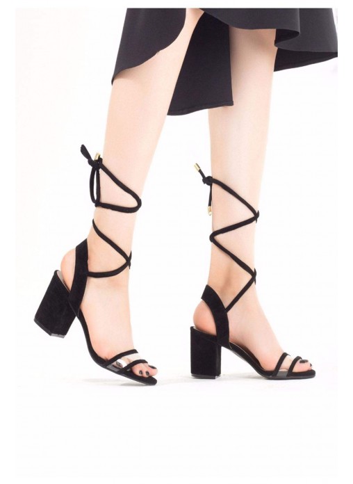 Renk/Detay: Siyah Süet Bilekten Bağlamalı Bayan Topuklu AyakkabıKalıp: Standart ayak ölçülerine göre Tam KalıpTopuk Boyu : 8 cmTaban Materyali: Neolit Taban