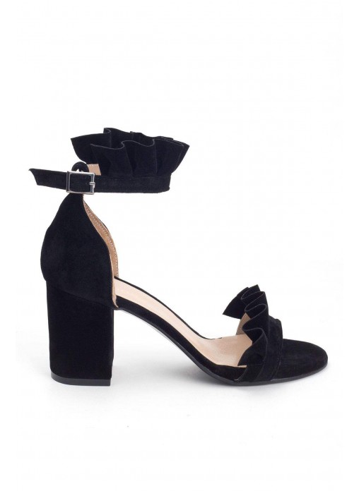 Renk/Detay: Siyah Süet Pileli Bilekten Kemerli Bayan Stiletto Ayakkabı Kalıp: Standart ayak ölçülerine göre Tam Kalıp Topuk Boyu : 7,5 cm Taban Materyali: Neolit Taban