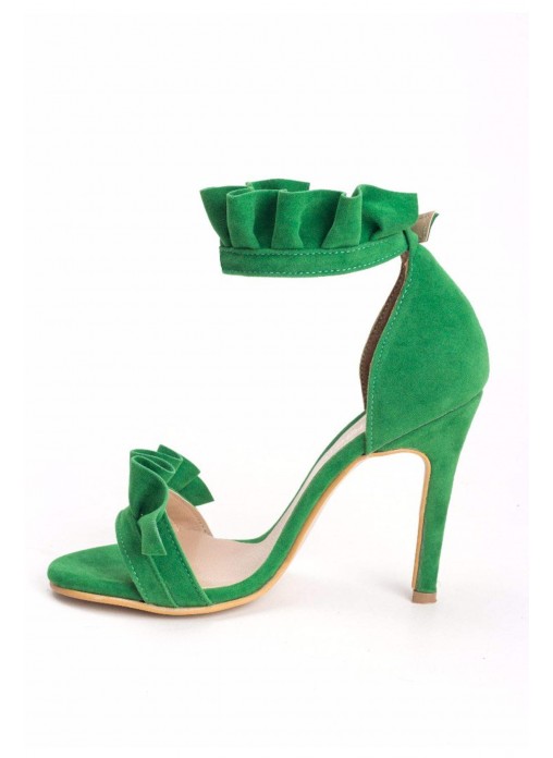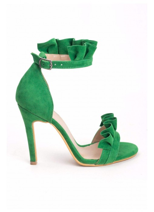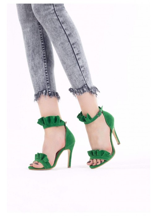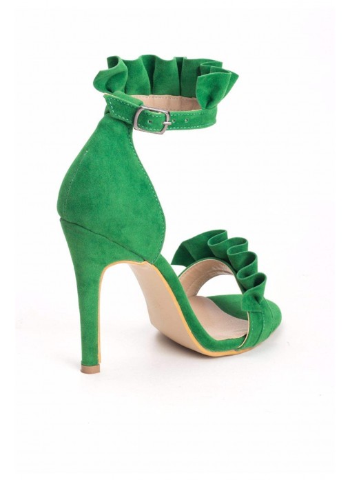 Renk/Detay: Yeşil Süet Pileli Bilekten Kemerli Bayan Stiletto AyakkabıKalıp: Standart ayak ölçülerine göre Tam KalıpTopuk Boyu : 10,5 cmTaban Materyali: Neolit Taban
