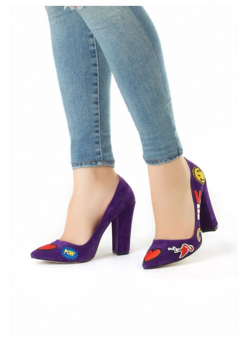 Renk/Detay: Mor İşlemeli Bayan Kalın Topuklu Ayakkabı Kalıp: Standart ayak ölçülerine göre Tam Kalıp Topuk Boyu : 10 cm Taban Materyali: Hazır Taban