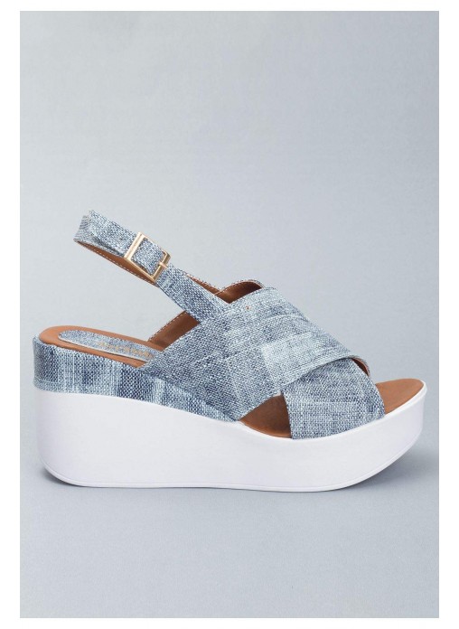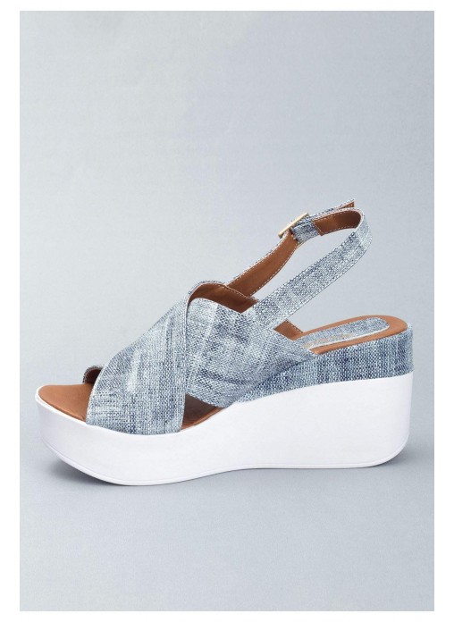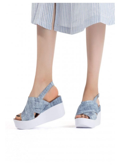 Renk/Detay: Gök Mavisi Cilt Bayan Dolgu Topuk Sandalet Ayakkabı Kalıp: Ürün Dar Kalıp Topuk Boyu : 7,5 cm Taban Materyali: Termo Taban