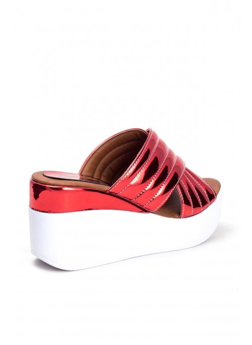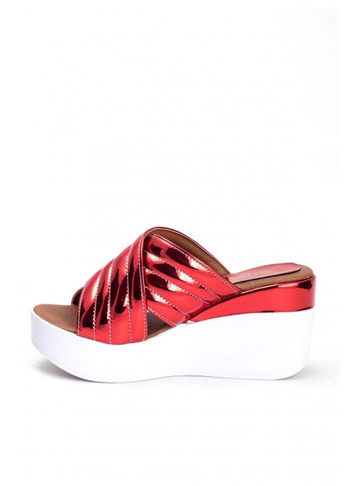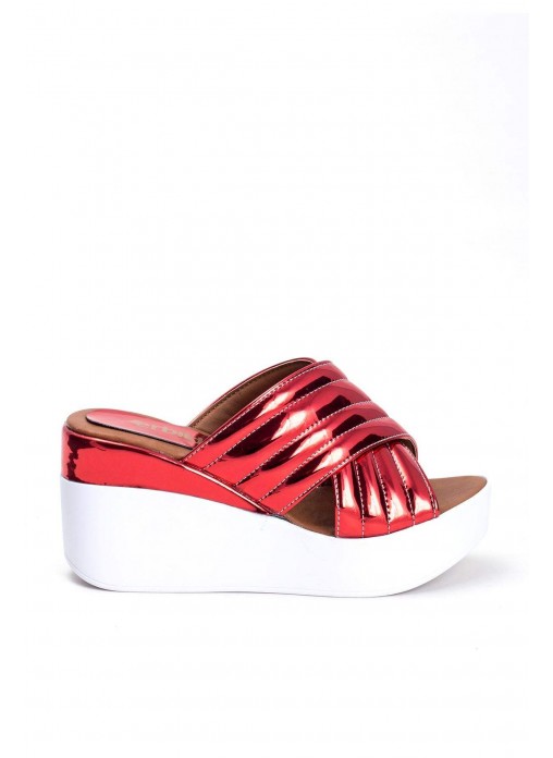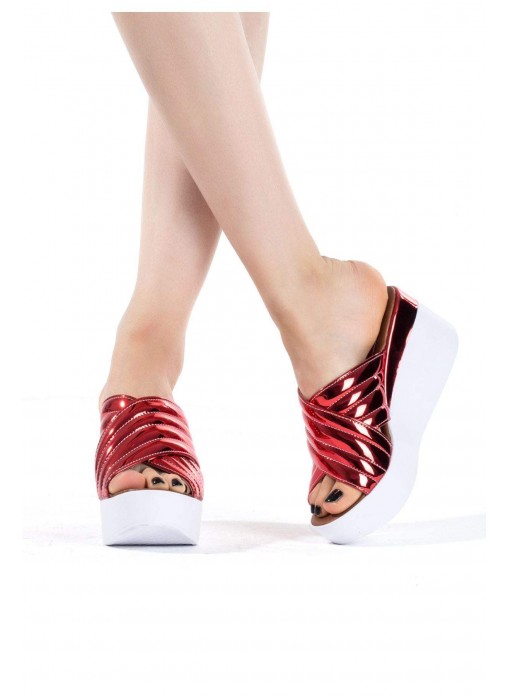 Renk/Detay: Kırmızı Rugan Bayan Dolgu Topuk Terlik Kalıp: Ürün Dar Kalıp Topuk Boyu : 7,5 cm Taban Materyali: Termo Taban