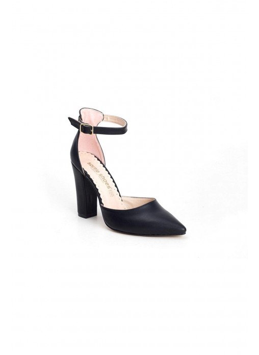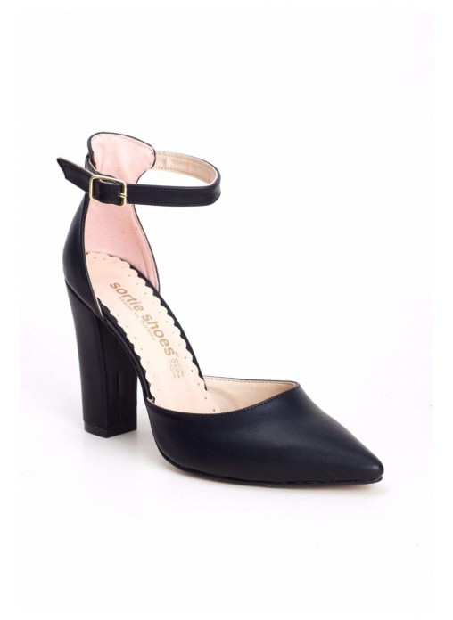 Renk/Detay: Sor Siyah Bayan Cilt Bilekten Kemerli Topuklu AyakkabıKalıp: Standart ayak ölçülerine göre Tam KalıpTopuk Boyu : 9.5 cmTaban Materyali: Neolit Taban