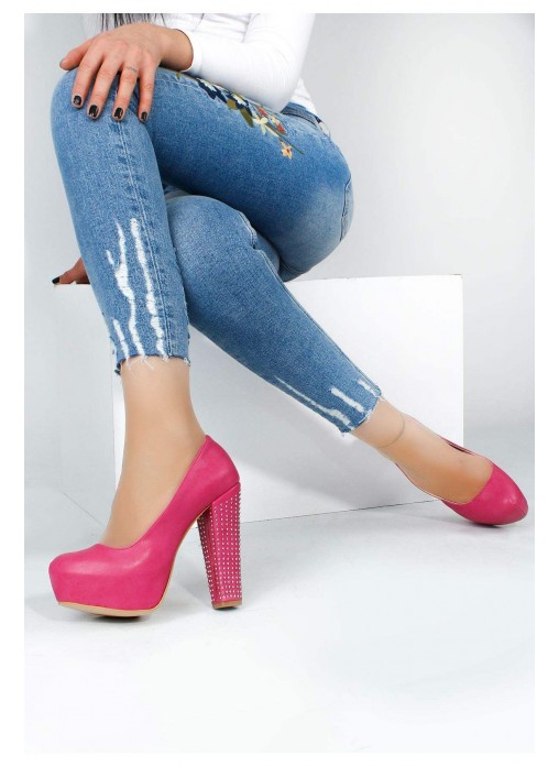 Renk/Detay: Pembe Cilt Bayan Platform Topuk Ayakkabı Kalıp: Standart ayak ölçülerine göre Tam Kalıp Topuk Boyu : 13 cm Taban Materyali: Hazır Taban