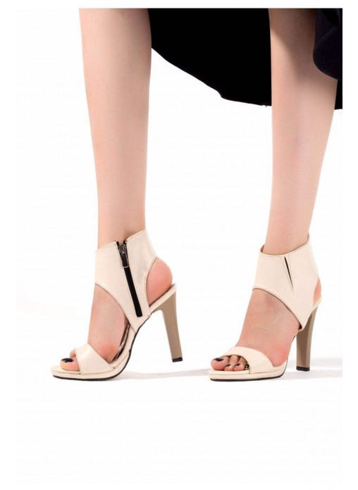 Renk/Detay: Bej Cilt Yandan Fermuarlı Bayan Topuklu AyakkabıKalıp: Standart ayak ölçülerine göre Tam KalıpTopuk Boyu : 11 cmTaban Materyali: Jurdan Taban