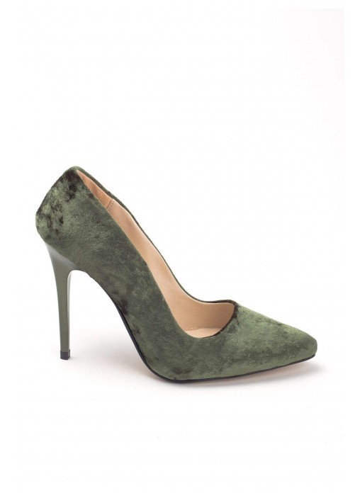 Renk/Detay: Yeşil Kadife Süet Bayan Stiletto Ayakkabı