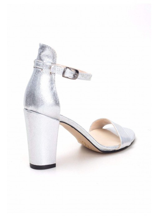 Renk/Detay: Gümüş simli Bilekten Kemerli Tek Bant Bayan Topuklu AyakkabıKalıp: Standart ayak ölçülerine göre Tam KalıpTopuk Boyu : 9 cmTaban Materyali: Neolit Taban