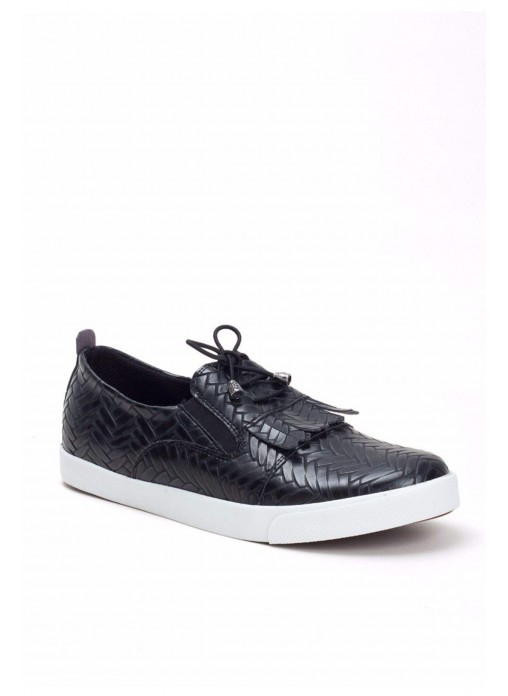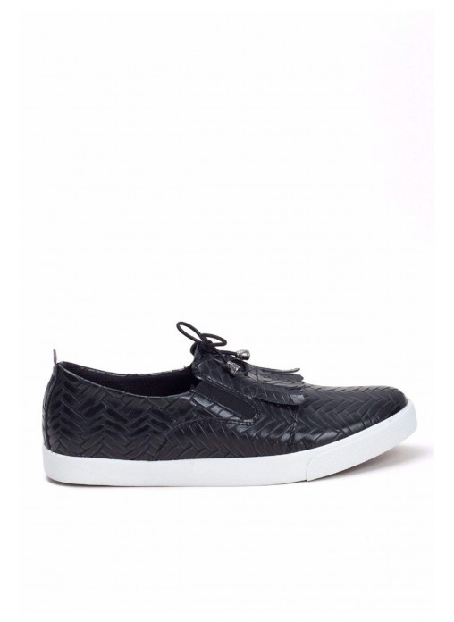 Renk/Detay: Siyah Cilt Desenli Püsküllü Erkek Spor AyakkabıKalıp: Standart ayak ölçülerine göre Tam KalıpTaban Materyali: Termo Taban