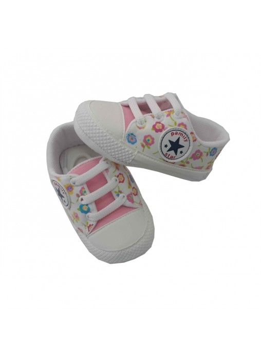 Pamily Baby Çiçek Desenli Bebek İlk Adım Ayakkabısı Pembe 18 NUMARA