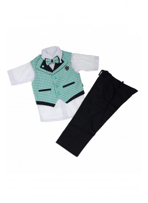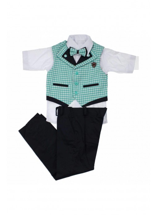 Erkek Çocuk Ekose Yelekli Smokin Takım Elbise 037-216602-040