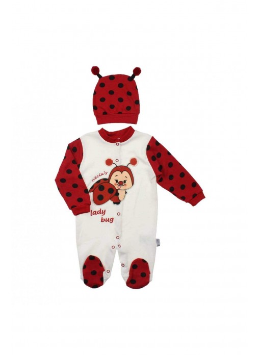 Modakids Kız Bebek Uğur Böcekli Şapkalı Tulum 037-88691-002