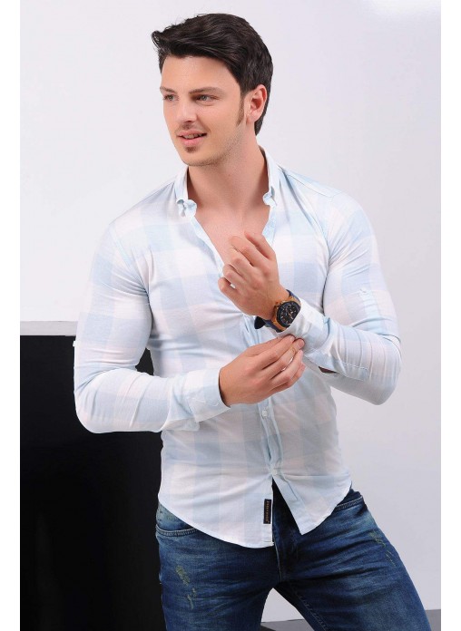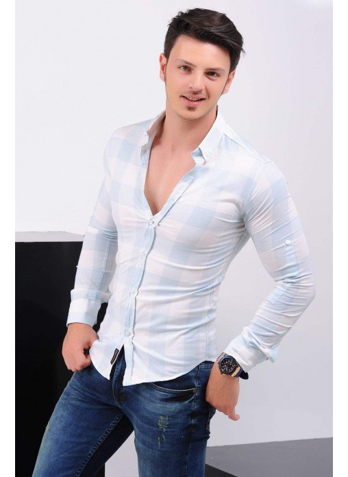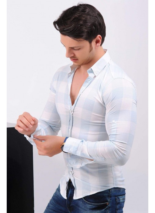 Kesim Tipi : Slim Fit Açık Mavi Beyaz Ekoseli Gömlek
