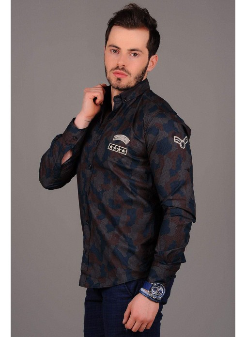 Apoletli Kamuflaj Gömlek Lacivert Füme