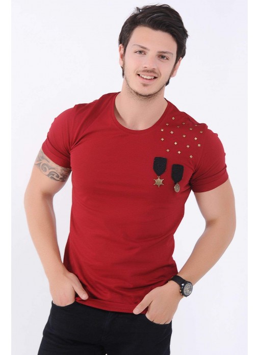 Apoletli Omuz Taş Kırmızı T-Shirt