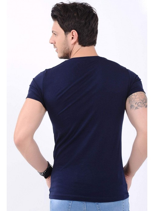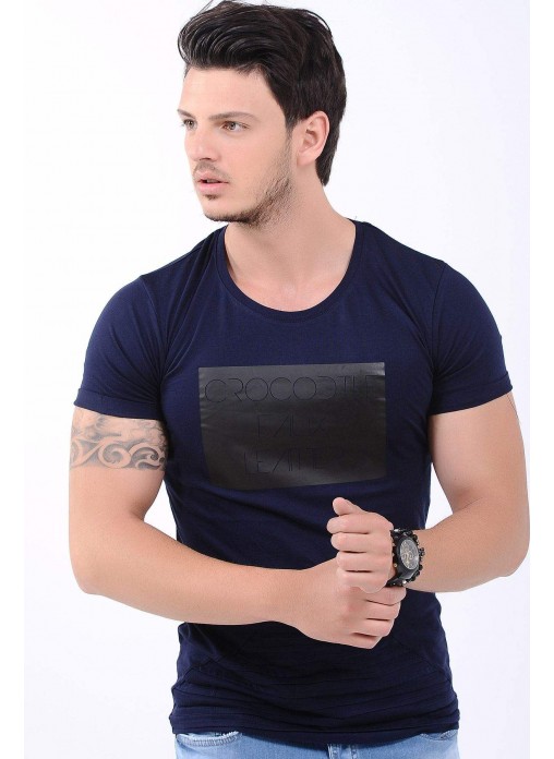 Baskılı Etek Tırtık Lacivert T-Shirt