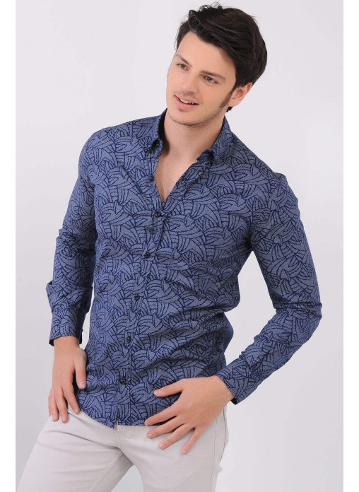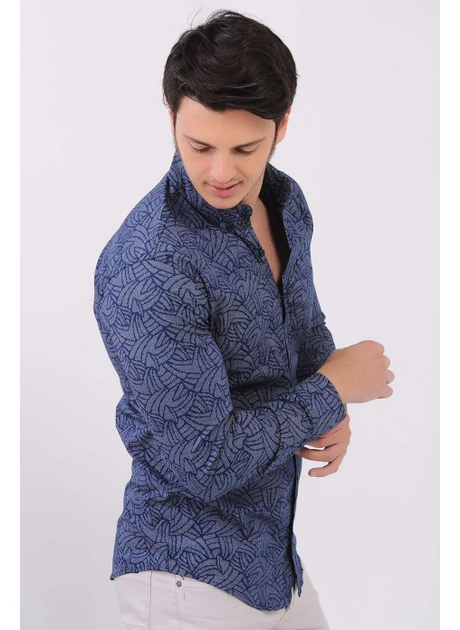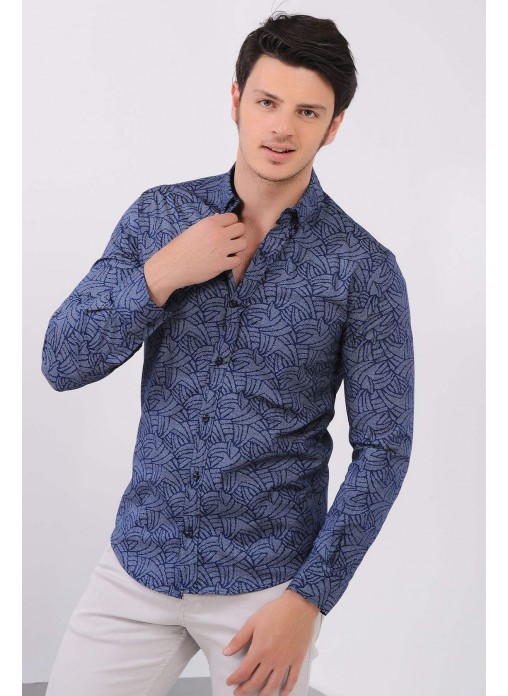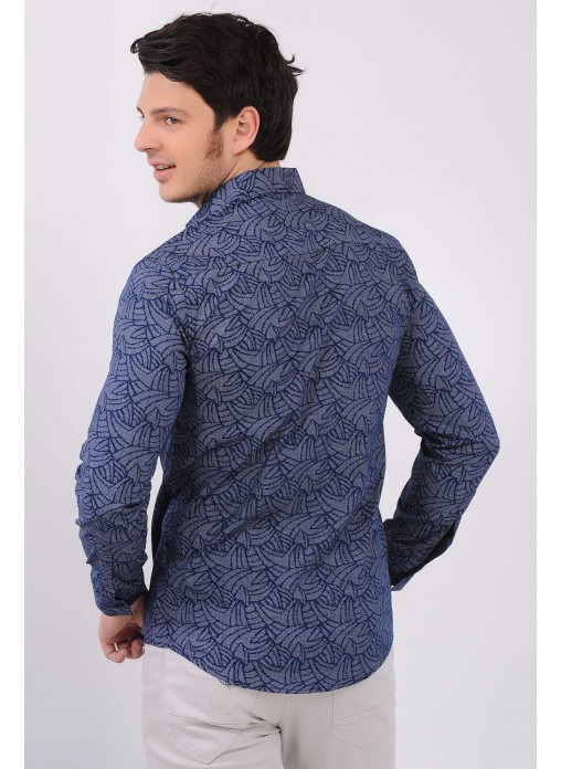 Kesim Tipi : Slim Fit Beyaz Desenli Mavi Gömlek