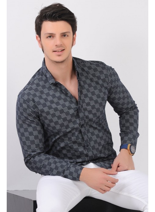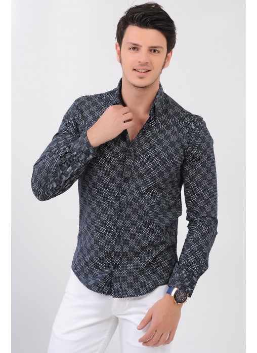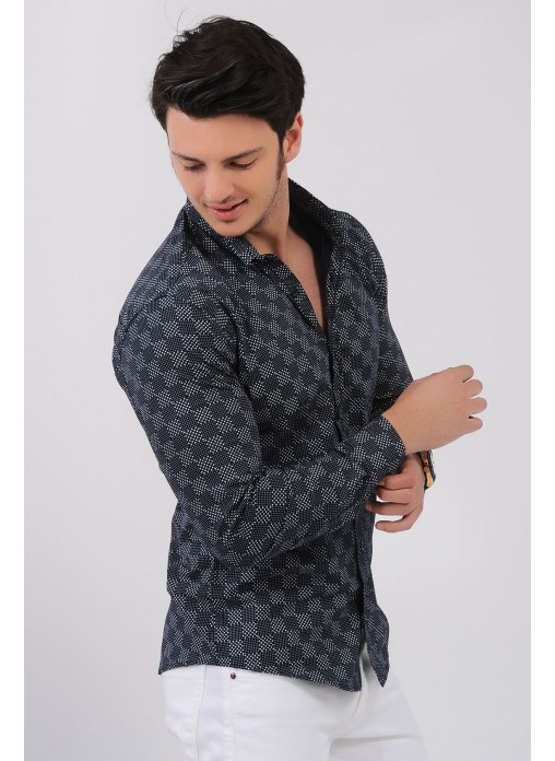 Kesim Tipi                 : Slim Fit Beyaz Noktacıklı Lacivert Gömlek