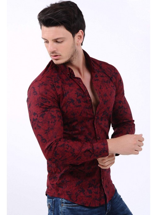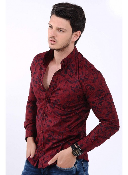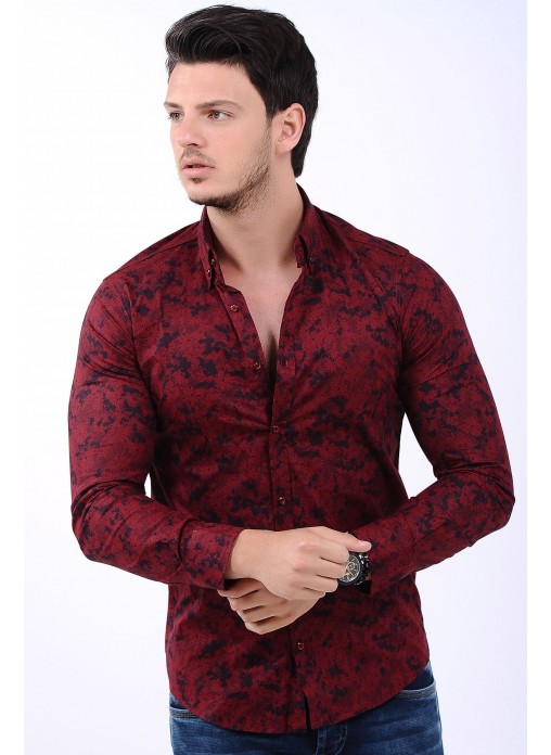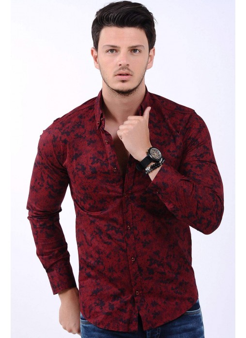 Kesim Tipi : Slim Fit Bordo Çiçek Desenli Lacivert Gömlek