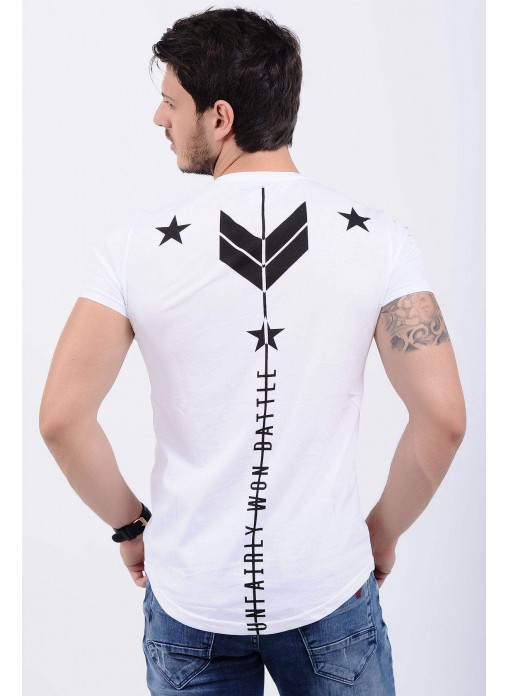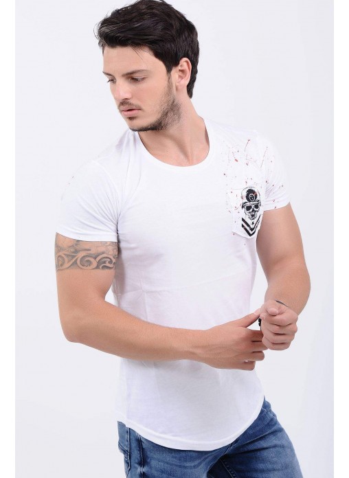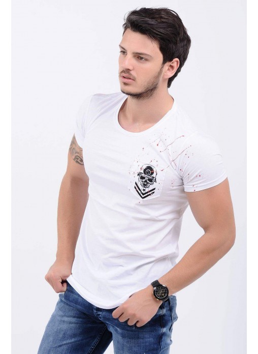 Cep Püskürtme Baskılı Beyaz T-Shirt