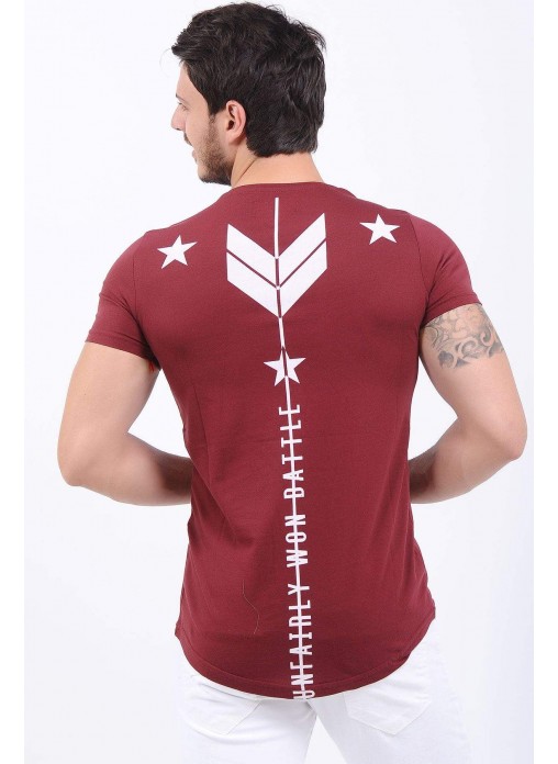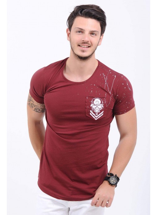 Cep Püskürtme Baskılı Bordo T-Shirt
