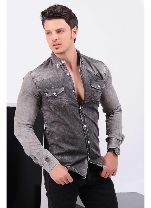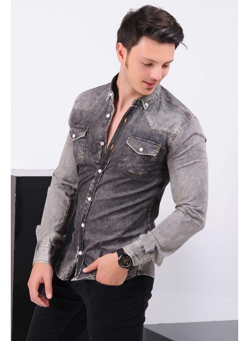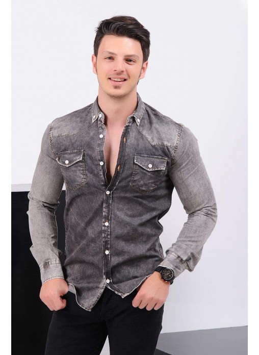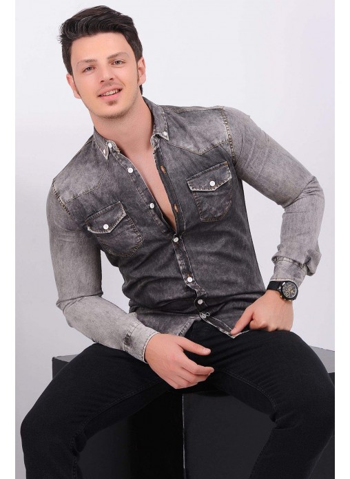 Kesim Tipi : Slim Fit Çift Cep Füme Gömlek