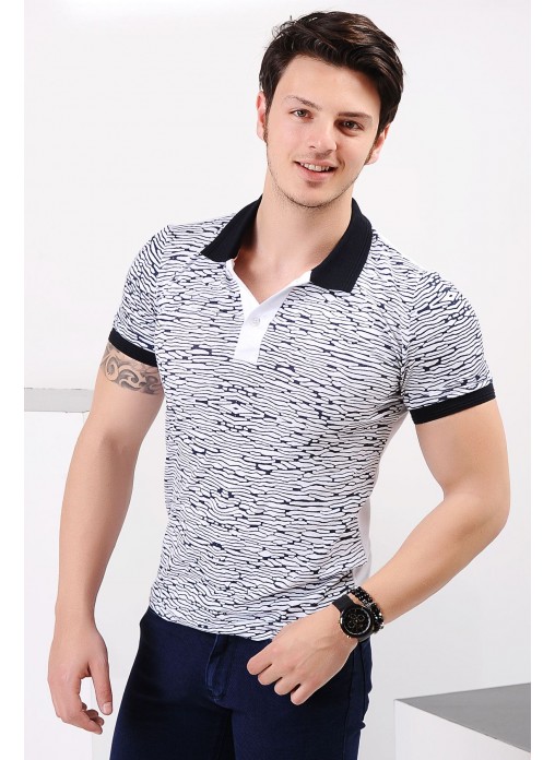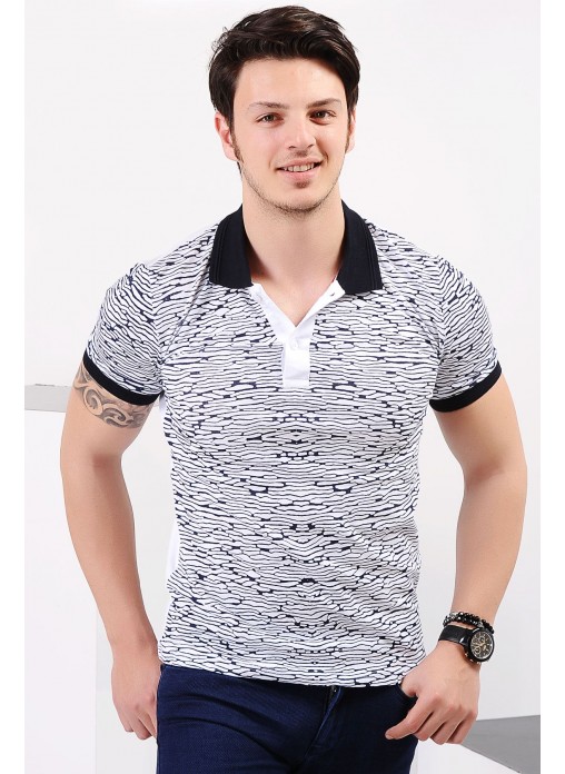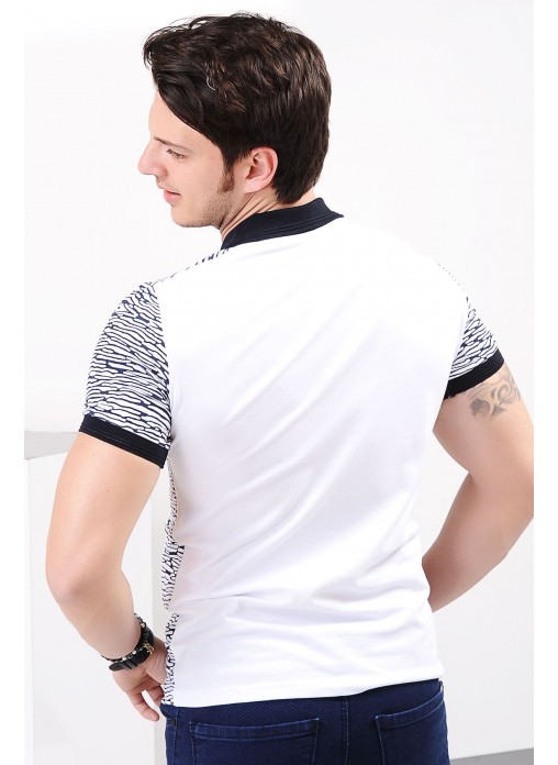Desenli Polo Yaka Beyaz T-shirt