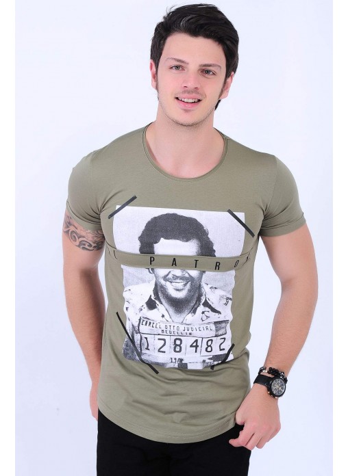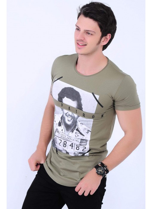 Kesim Tipi : Slim Fit El Patron Baskılı Haki T-shirt