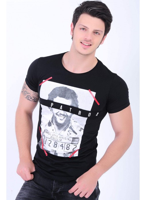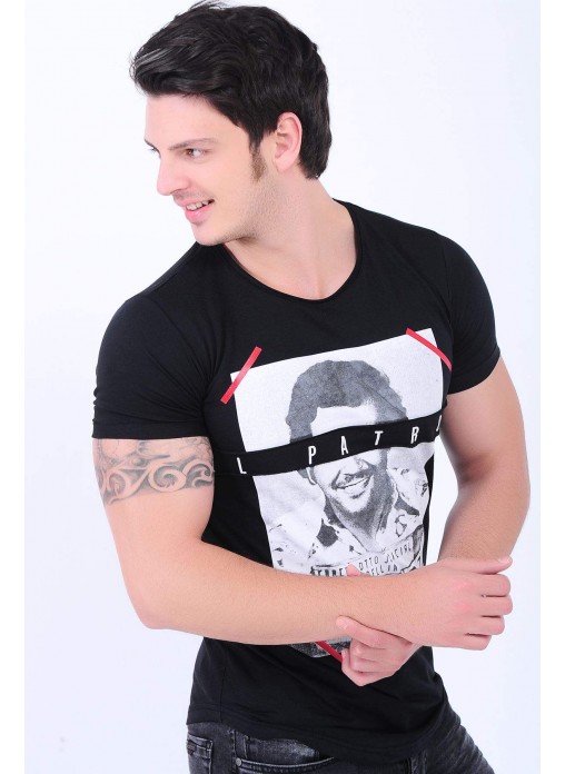 Kesim Tipi : Slim Fit El Patron Baskılı Siyah T-Shirt