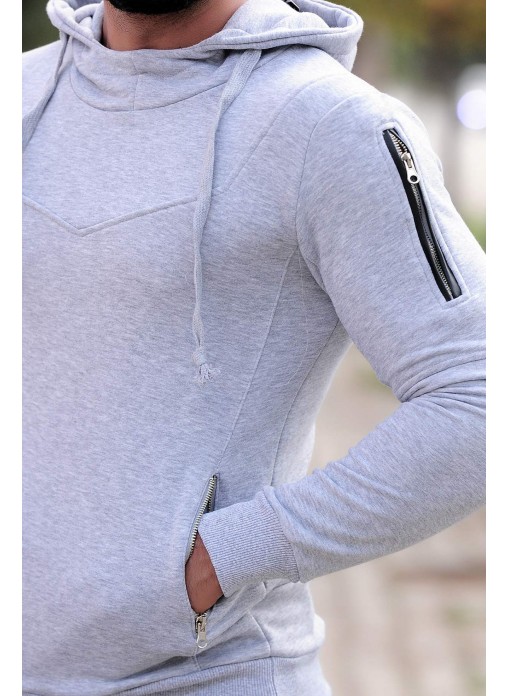 erkek sweat kol fermuar detaylı gri