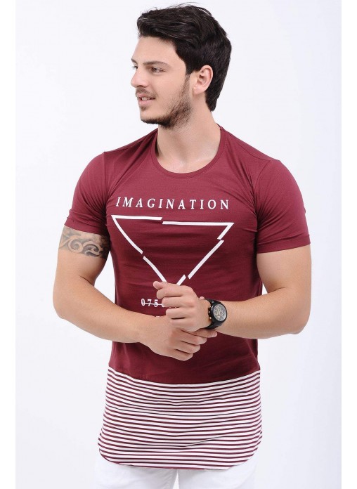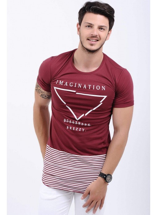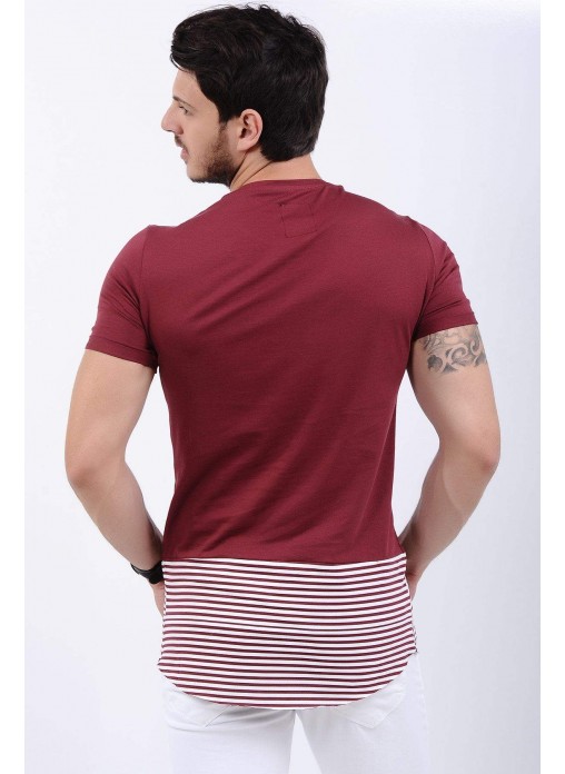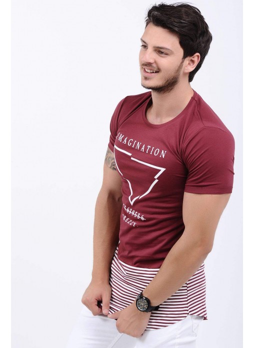 Etek Çizgi Baskılı Bordo T-Shirt