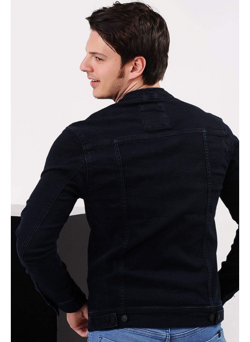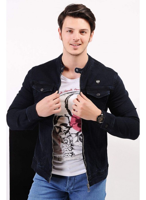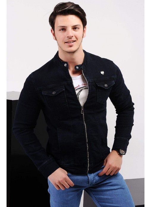 Fermuarlı Çift Cep Lacivert Kot Ceket